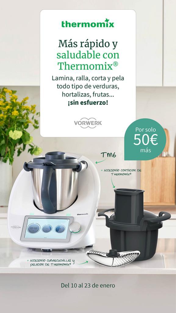 Thermomix sigue creciendo, las posibilidades del robot más completo siguen aumentando. Se lanza el Cortador, un accesorio que permite con un solo disco cuatro tipos de corte. Lamina y ralla frutas, verduras y hortalizas. Ahora la tortilla de patatas todavía más fácil y rápida. Se acabó llorar mientras de corta cebolla.