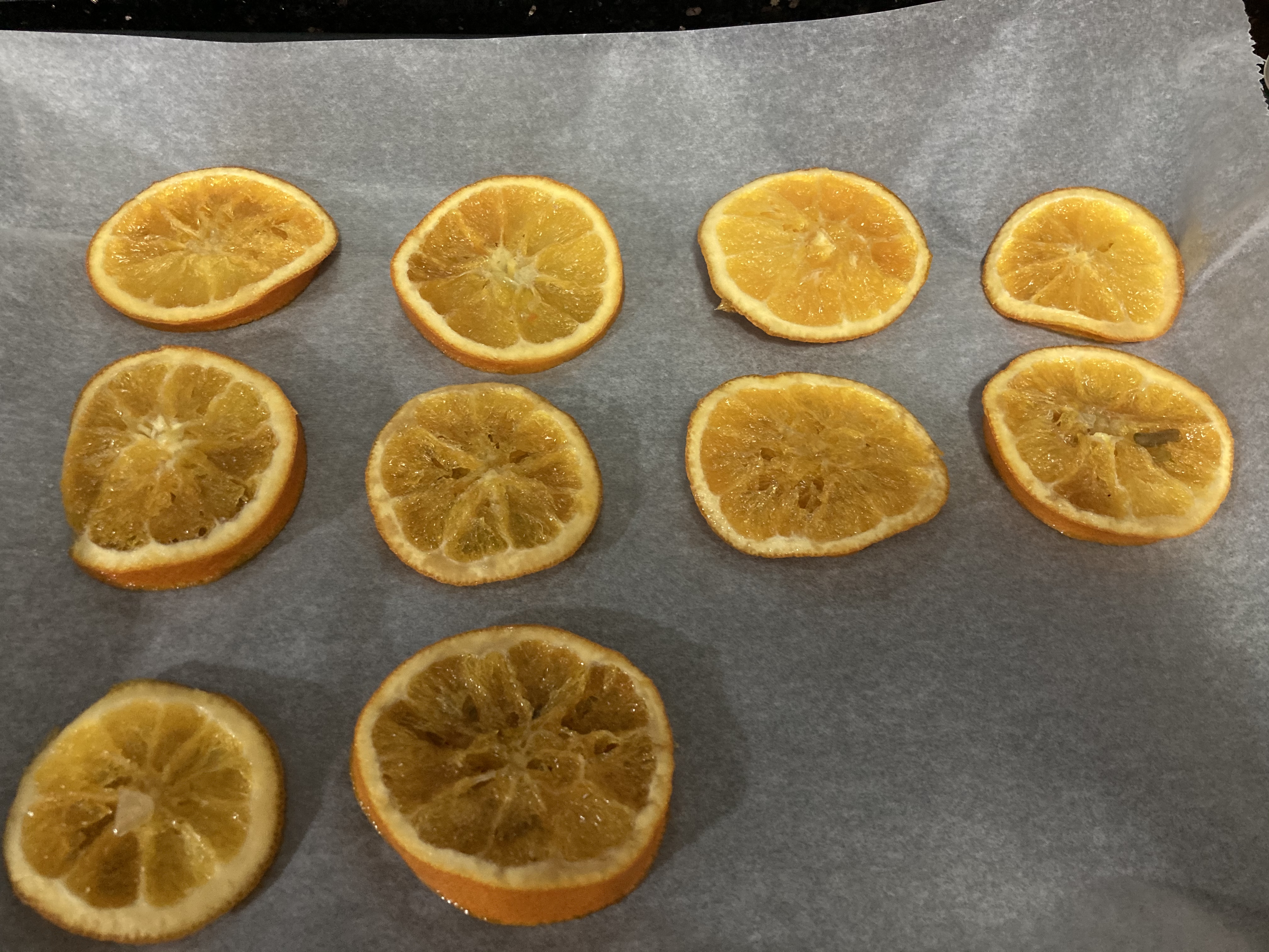 -Partimos las naranjas en rodajas lo más finas posibles. Las ponemos en el castillo