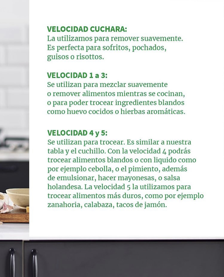 A continuación os dejo unas imágenes con un resumen detallado, de cada una de las velocidades de vuestro Thermomix ®️.