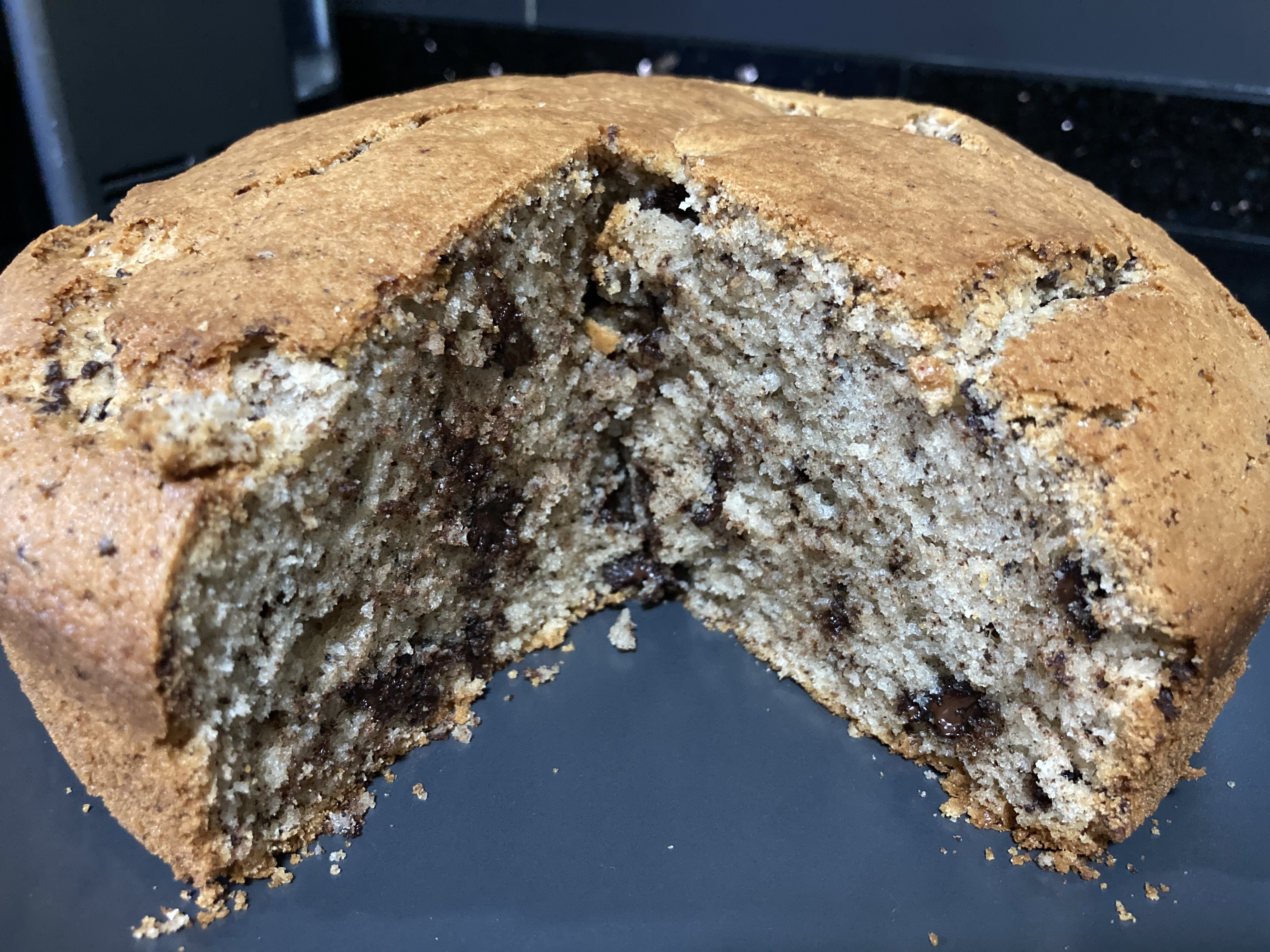 El resultado; un esponjoso y sabroso bizcocho con trocitos de chocolate!!!!