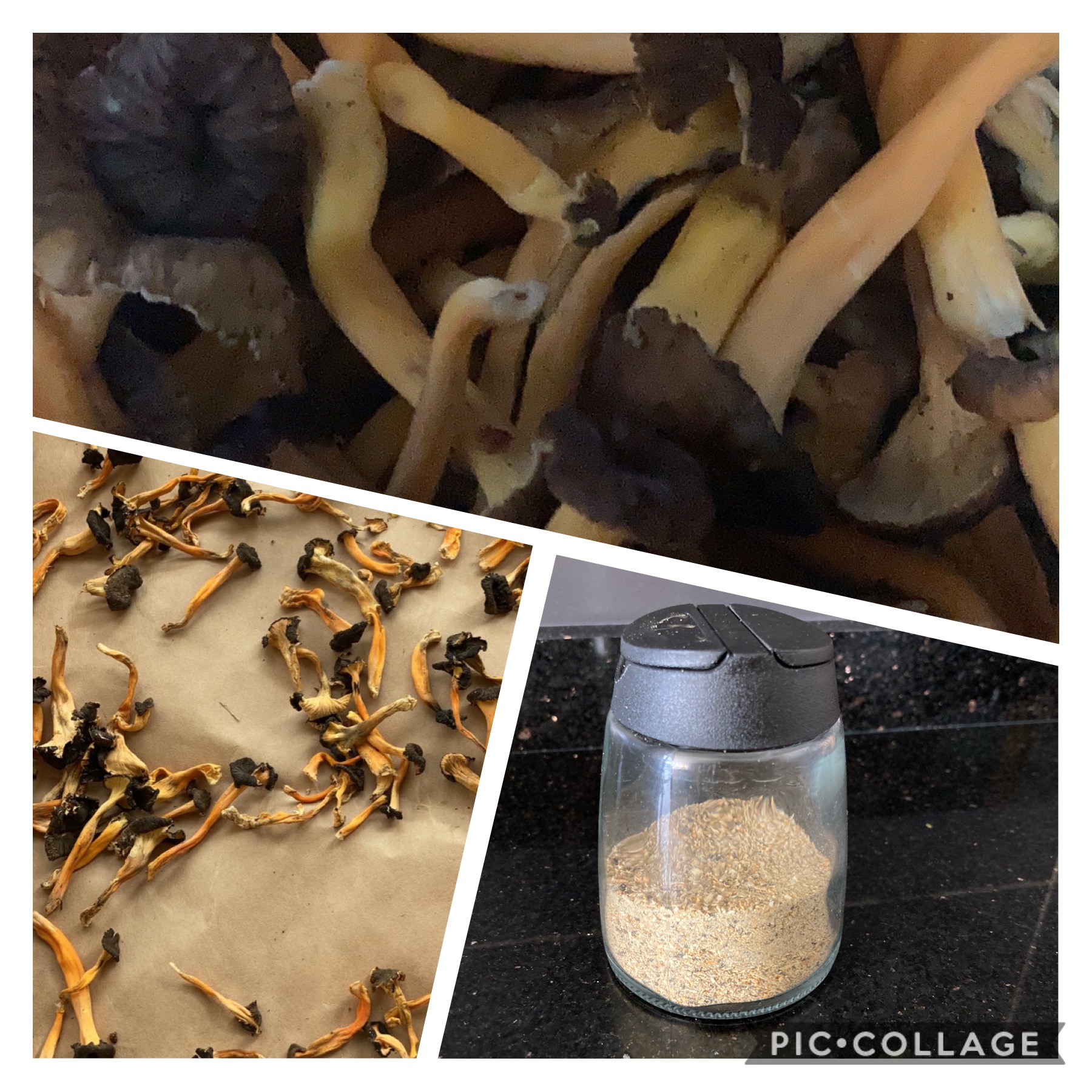 Cuando llegamos a casa, las pusimos sobre papel para que se secarán en el ventanal de la cocina y una vez estaban completamente secas, las hicimos polvo.