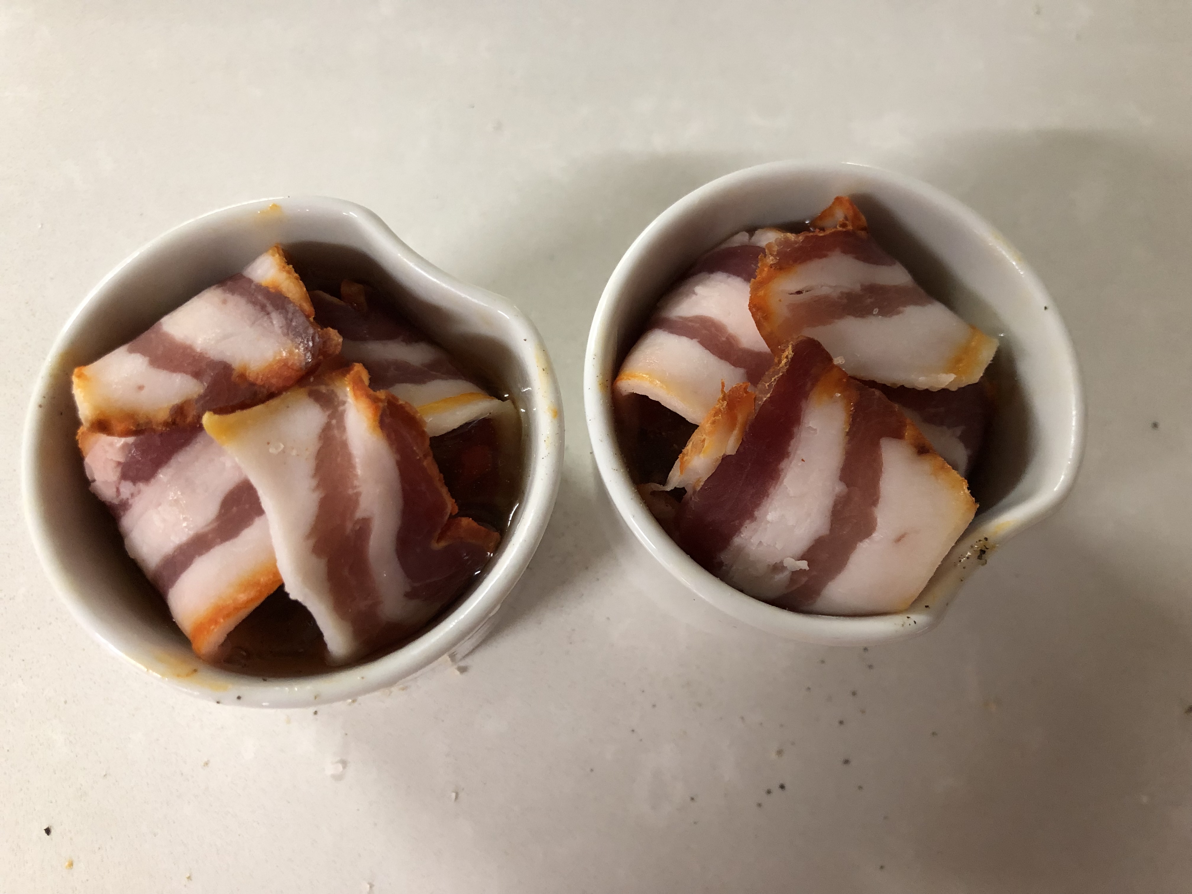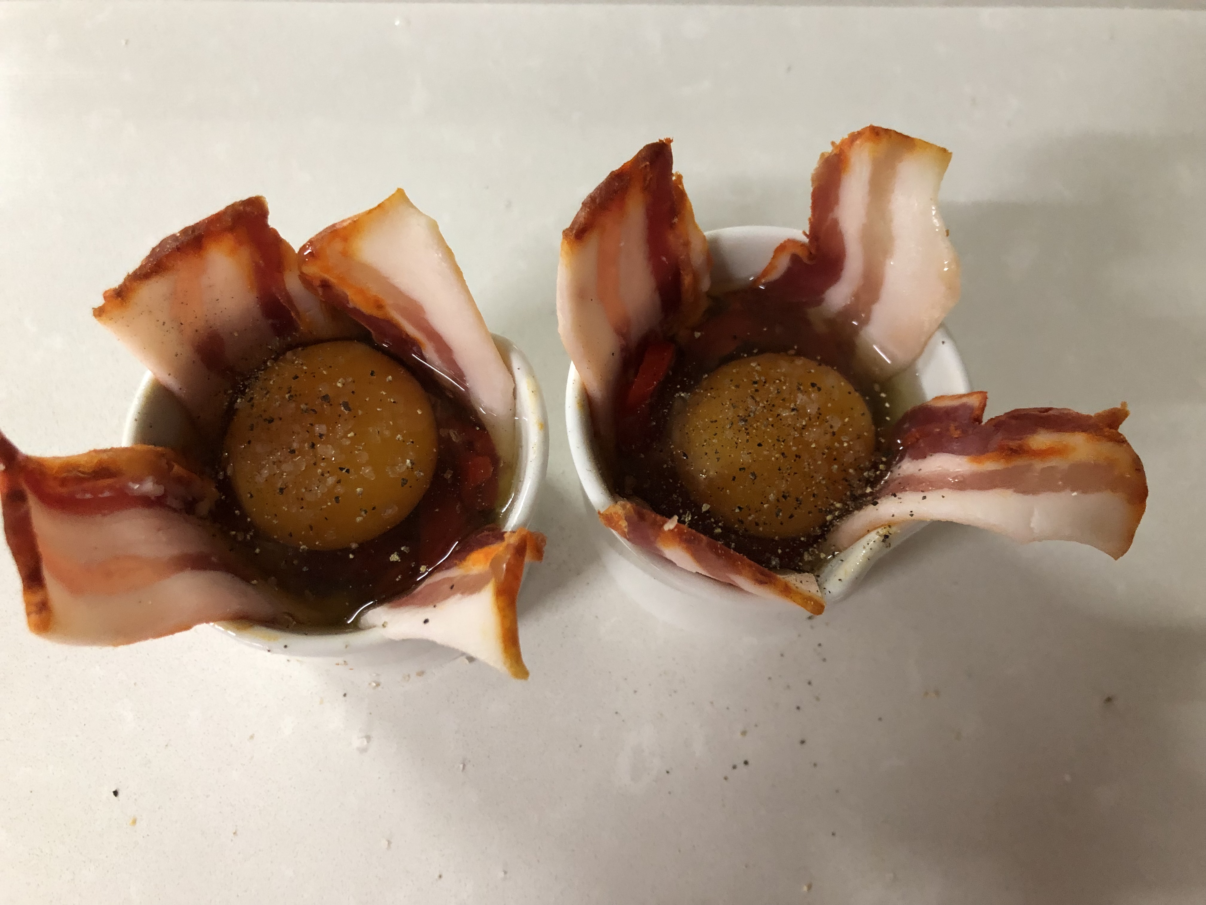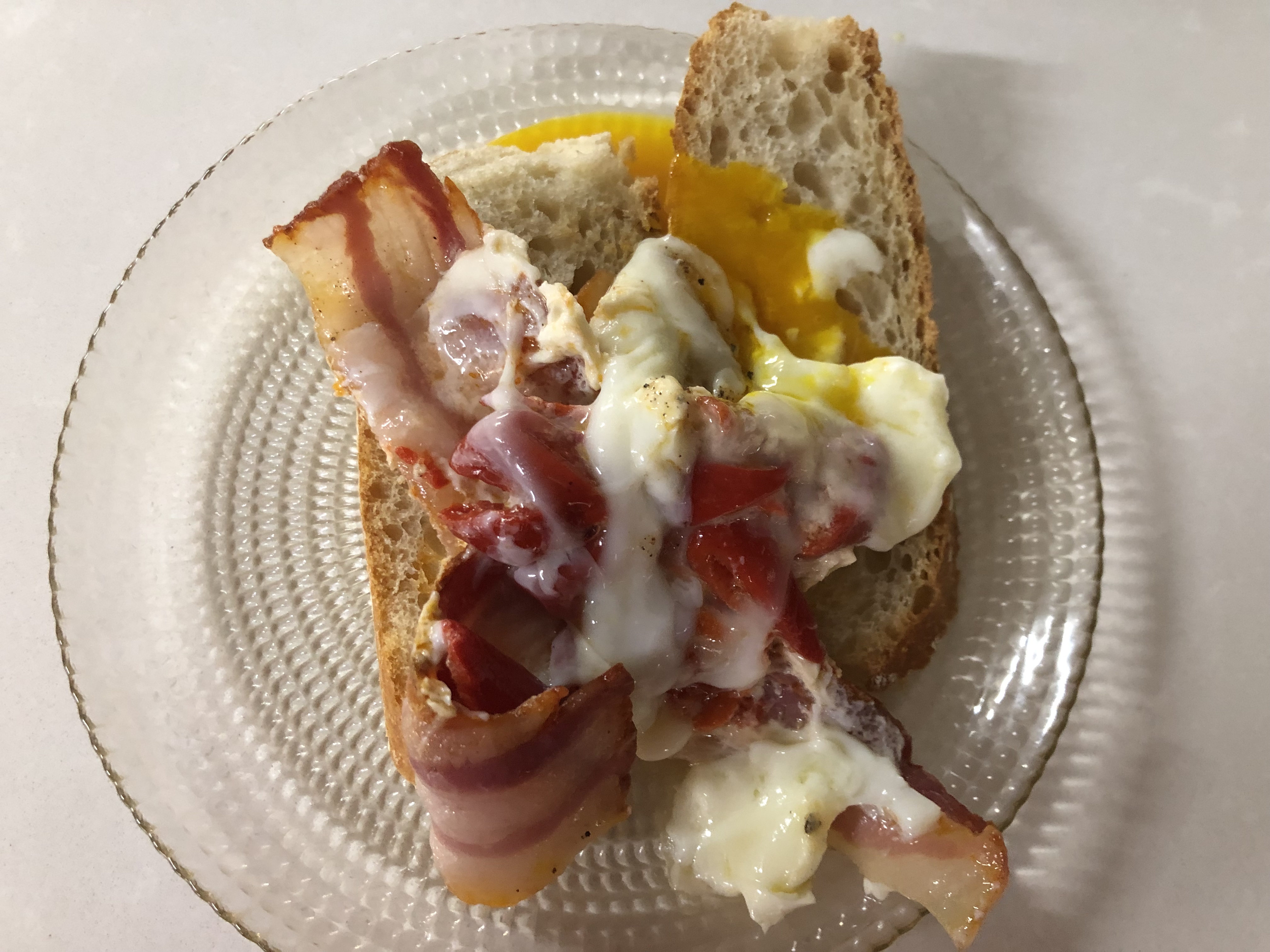 Huevos poche con bacon y piquillos