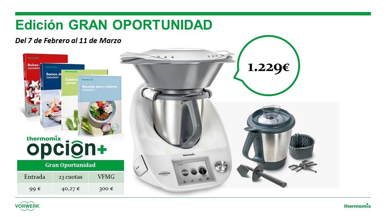 Con THERMOMIX cocino de modo SALUDABLE y además de una manera CREATIVA(me ayuda a cocinar lo que antes no me atrevía y he encontrado muchas maneras diferentes de procesar algunos alimentos, me da muchos trucos para conseguir recetas maravillosas a las que nadie se puede resistir.