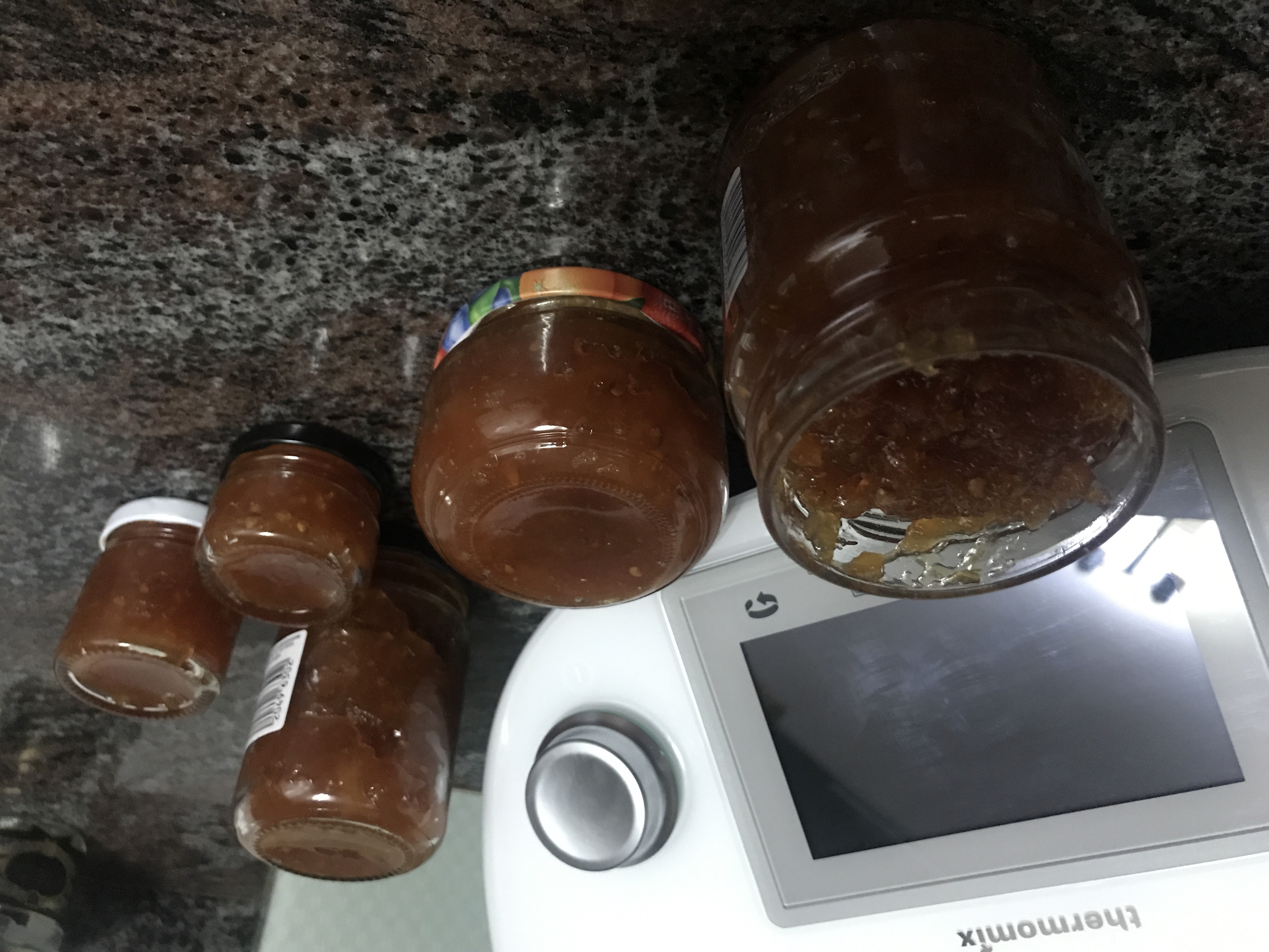 Una vez terminado, se vierte en frasquitos y cerramos bien. Ponemos la tapa hacia abajo y dejamos enfriar.