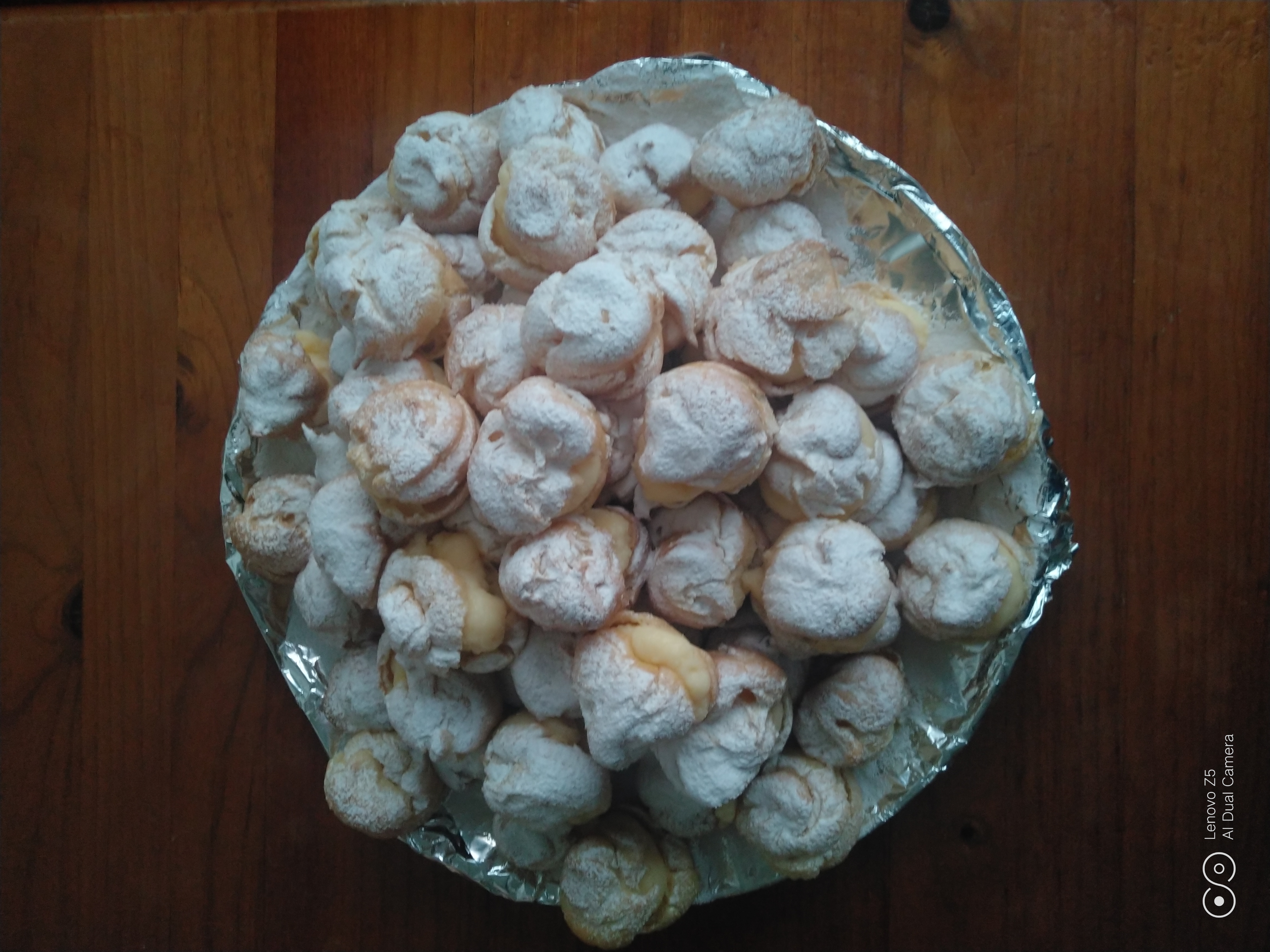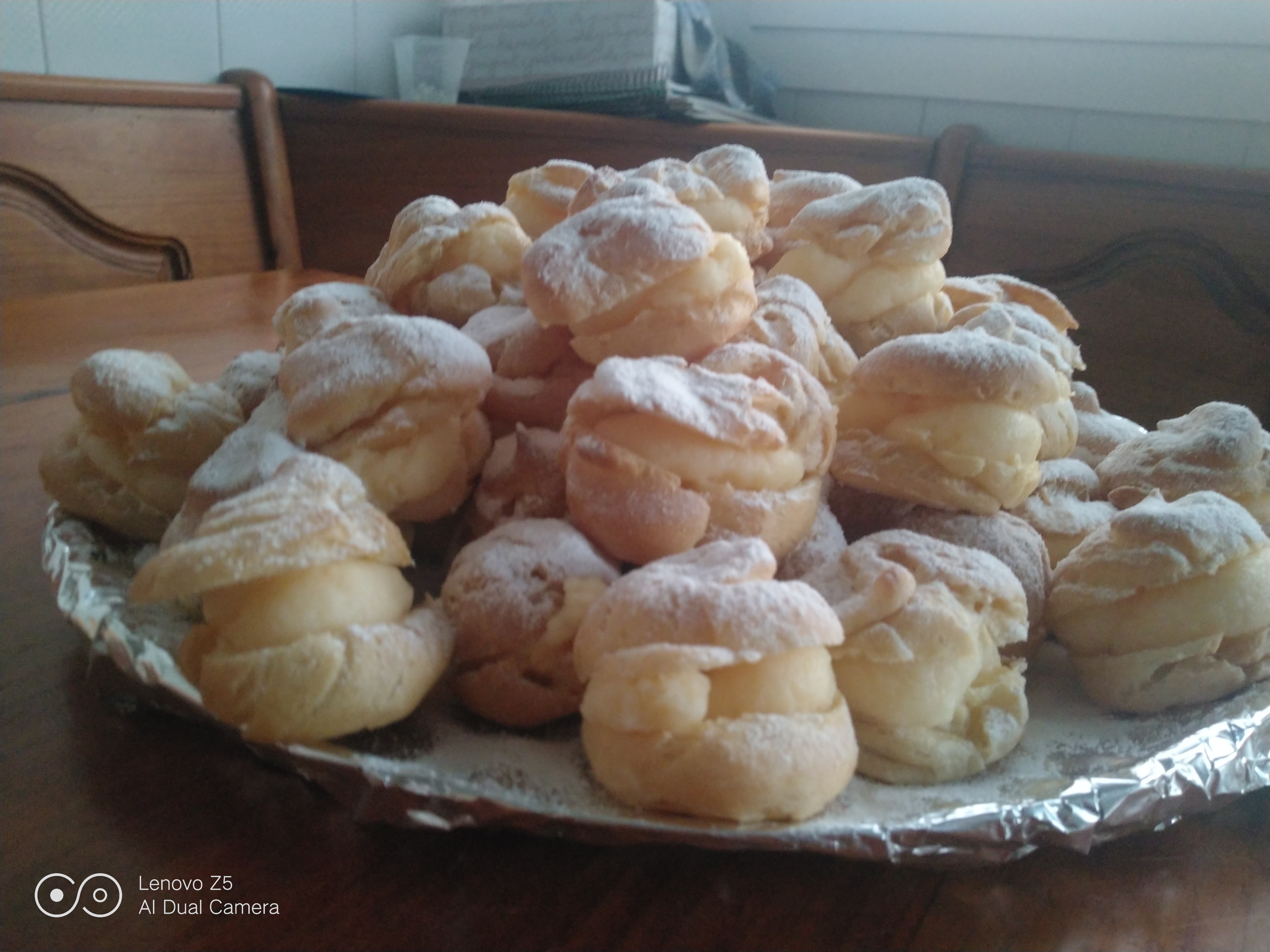 Hoy es mi cumpleaños y a mi me encanta celebrarlo con mi gente con algo dulce, para eso he preparado unos profiteroles rellenos de crema pastelera y azúcar glas por encima.